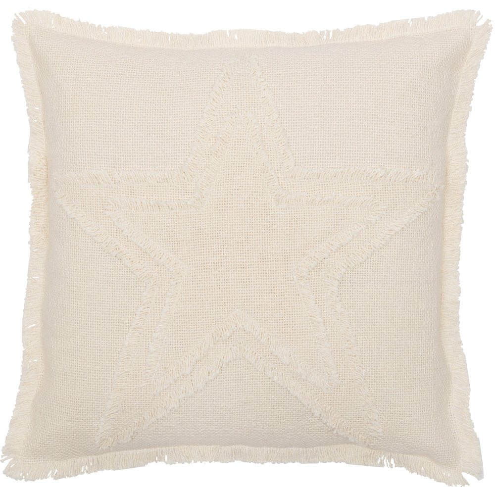• Double-appliqued creme burlap stars add even more texture with fringed edges