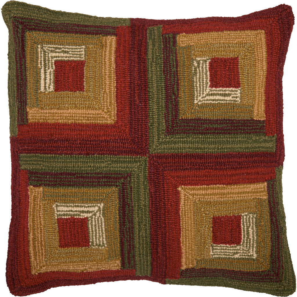 Tea Cabin Log Cabin Hooked Pillow 18x18