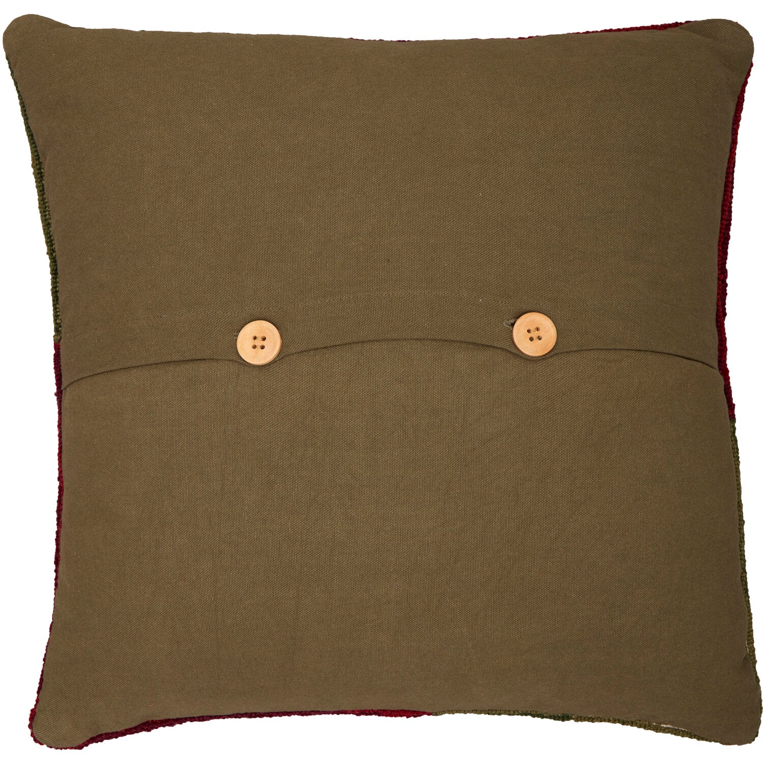 Add a touch of rustic charm to your lodge-themed abode with the Tea Cabin Log Cain Hooked Pillow. Delicately crafted in a wool cotton blend for a quality look and feel. Showcasing geometric squares in a variety of earth-tone colors for an eye-catching, decorative appeal. This throw pillow is covered in a looped and hooked technique for added texture and unique design that creates a beautiful, lasting impression. Perfect for your cabin style living room or bedroom. Reverses to 100% cotton solid color with button closures.