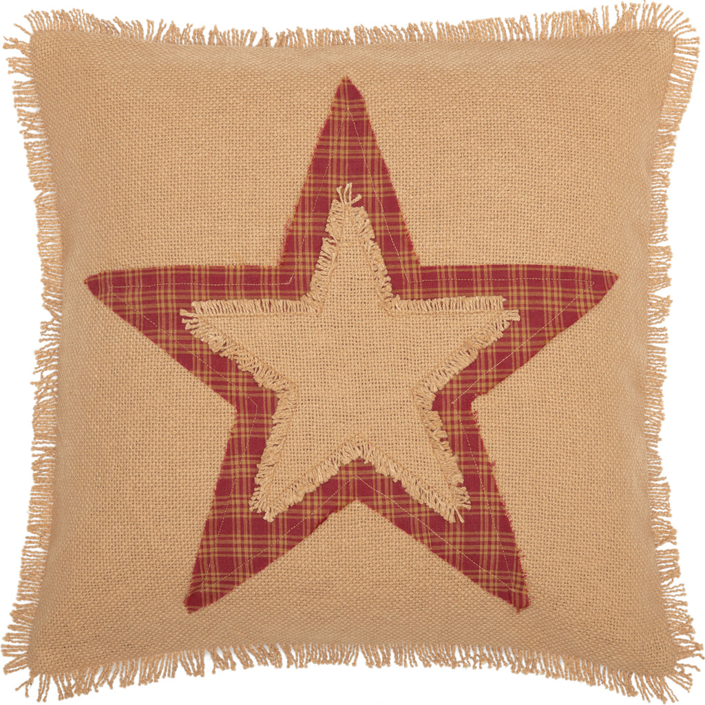Patriotic Burlap Natural Star Fringed Pillow Cover 16x16