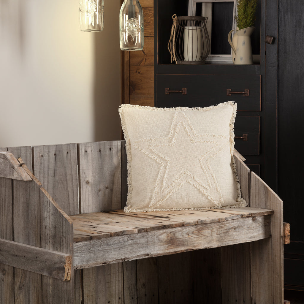 Burlap Creme Star Fringed Pillow Cover 16x16