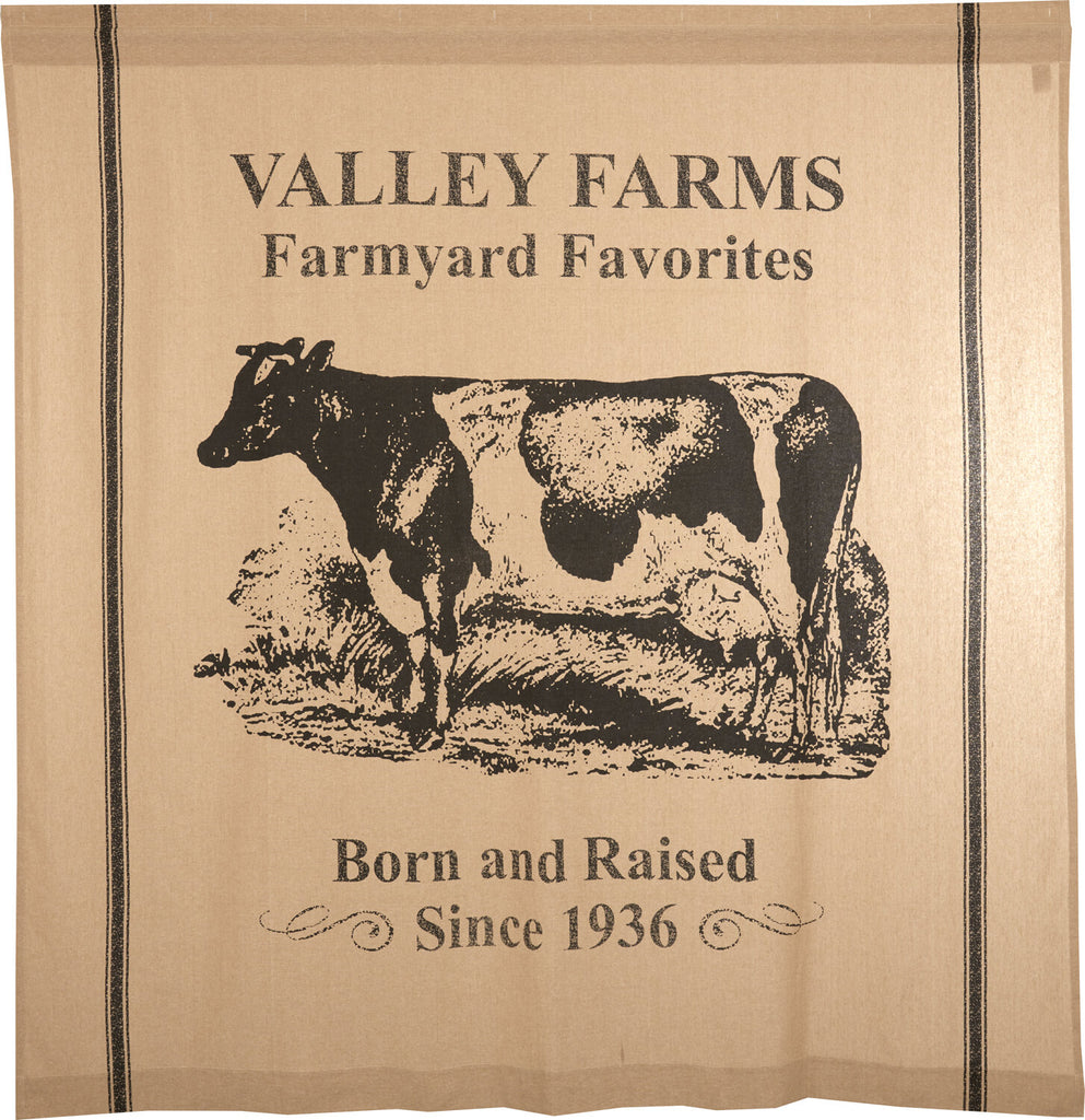 Decorate your bathroom with timeless country appeal with the Valley Farms Cow Shower Curtain. This soft burlap decorative outer curtain can be paired with any plastic inner lining to keep your floors dry and washroom fun. Use either a rod pocket or hanging look holes to customize the look. Perfect for any country bathroom or farmhouse home.