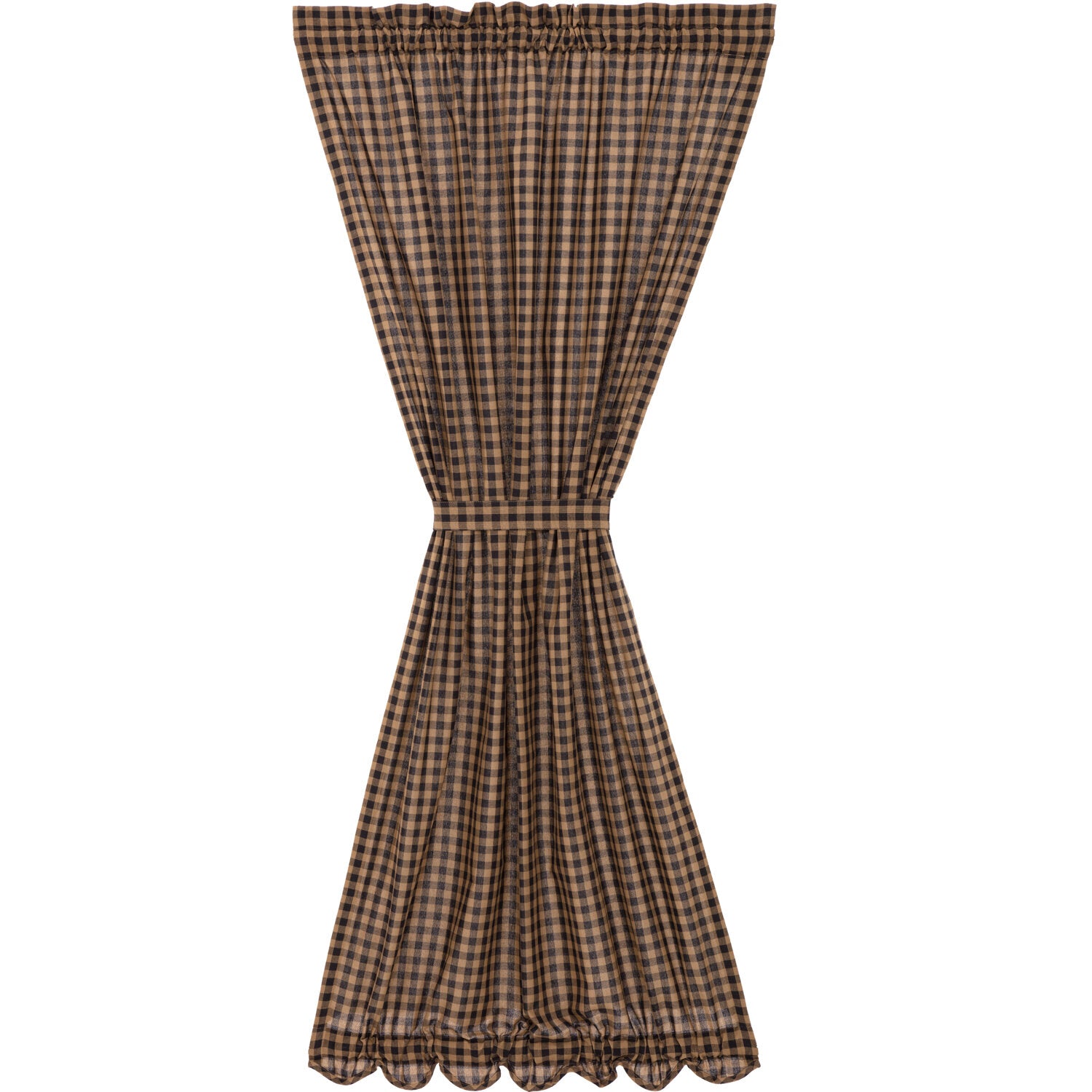 Black and khaki checks are blended with faded texture at points of intersection to give a modern facelift to the classic pattern on the Black Check Door Panel Curtain. This primitive style curtain features classic check pattern; lined with cotton to reduce fading and light penetration and includes matching tie back for a different look.