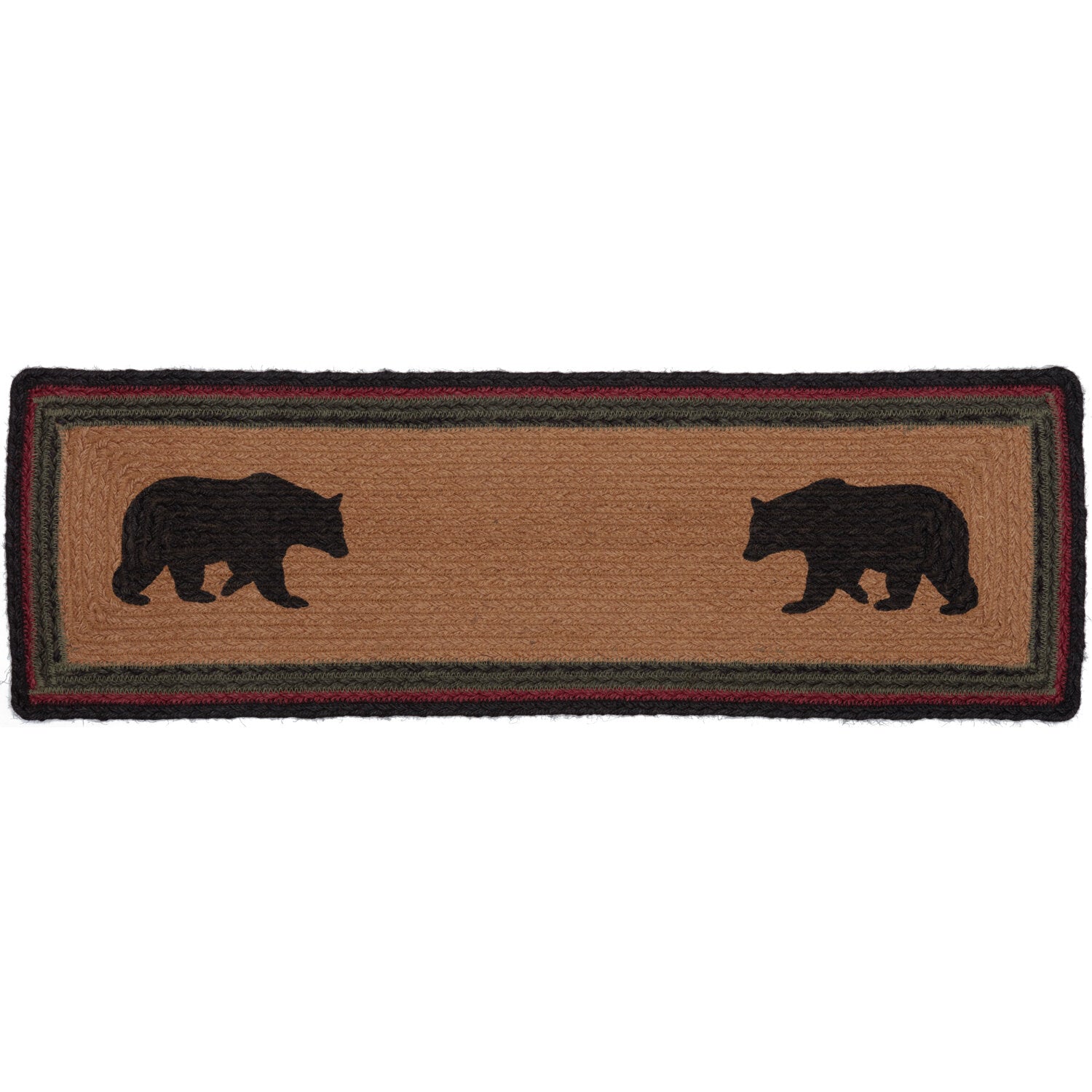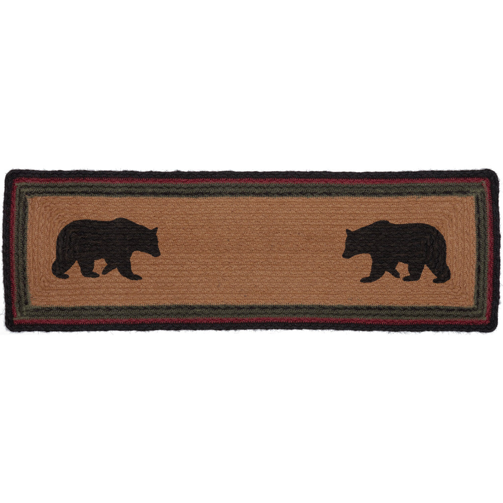 Capture the essence of rustic living with the wonderfully unique Wyatt Stenciled Bear Jute Stair Tread. Displaying two black bears facing each other on a neutral center, our stair tread features earthy lodge colors on soft and durable concentric jute braids. The rugged color and rustic design makes this an ideal addition to a lodge, log cabin, or lake house inspired home. For your safety, there is a latex spray on the reverse side to prevent slippage. 100% jute.