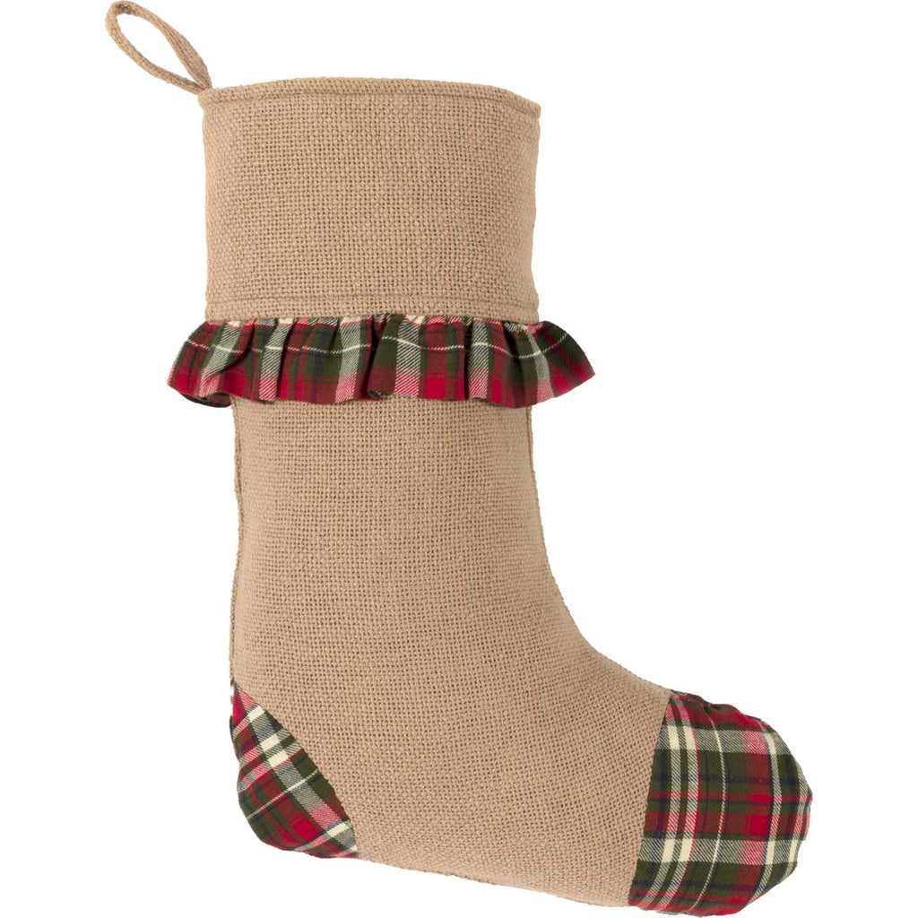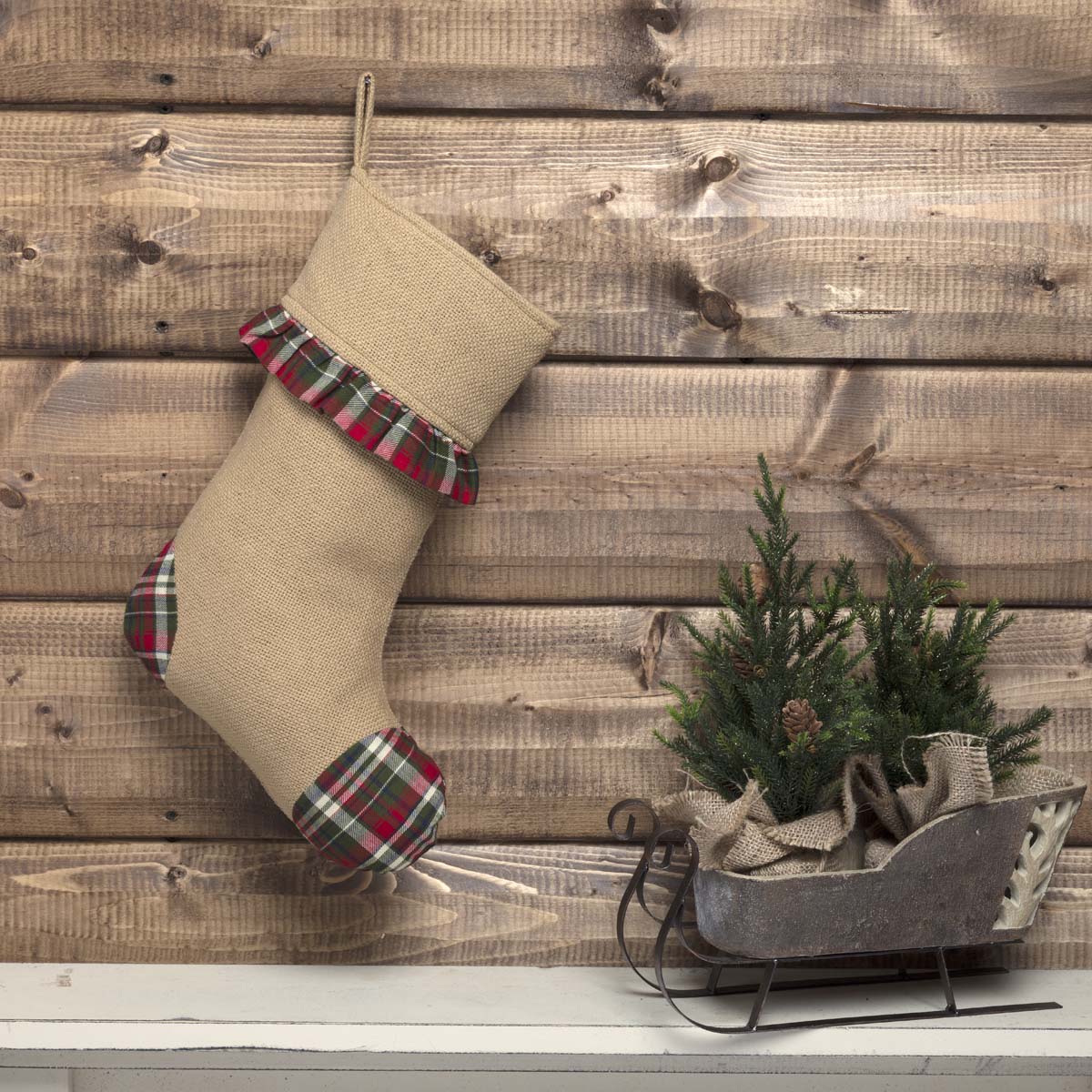 Burlap Cuff & Plaid Ruffle Stocking 11x15