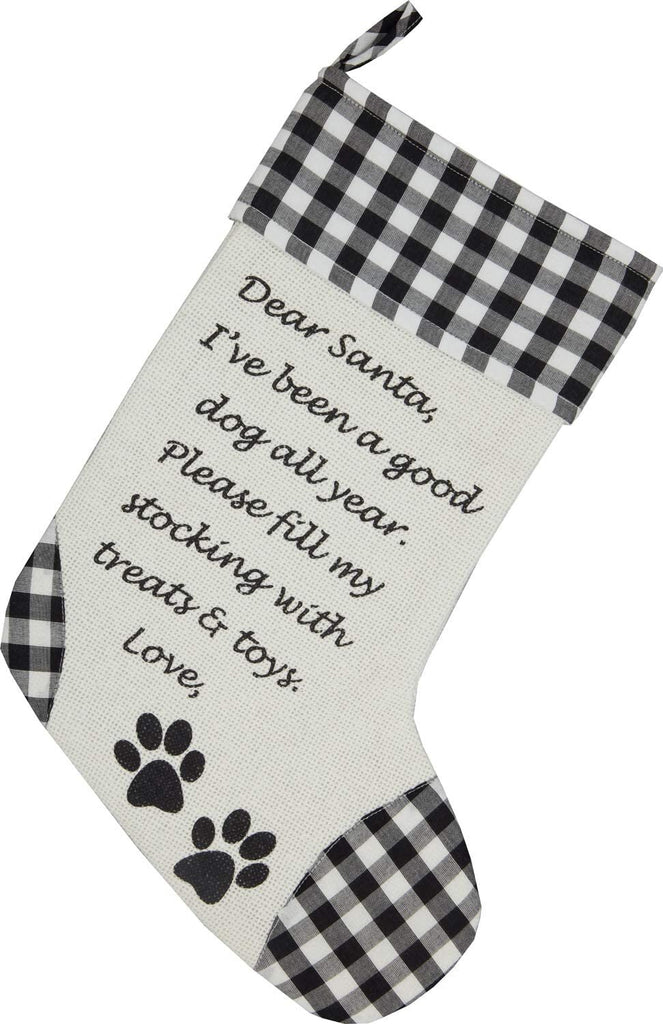 Show some puppy love to your doggy this winter with this buffalo check stocking. Print says "Dear Santa, I've been a good dog all year. Please fill my stocking with treats & toys. Love, (paw print)." This design is perfect for any country or farmhouse Christmas, or any home looking to show their pet some holiday cheer.