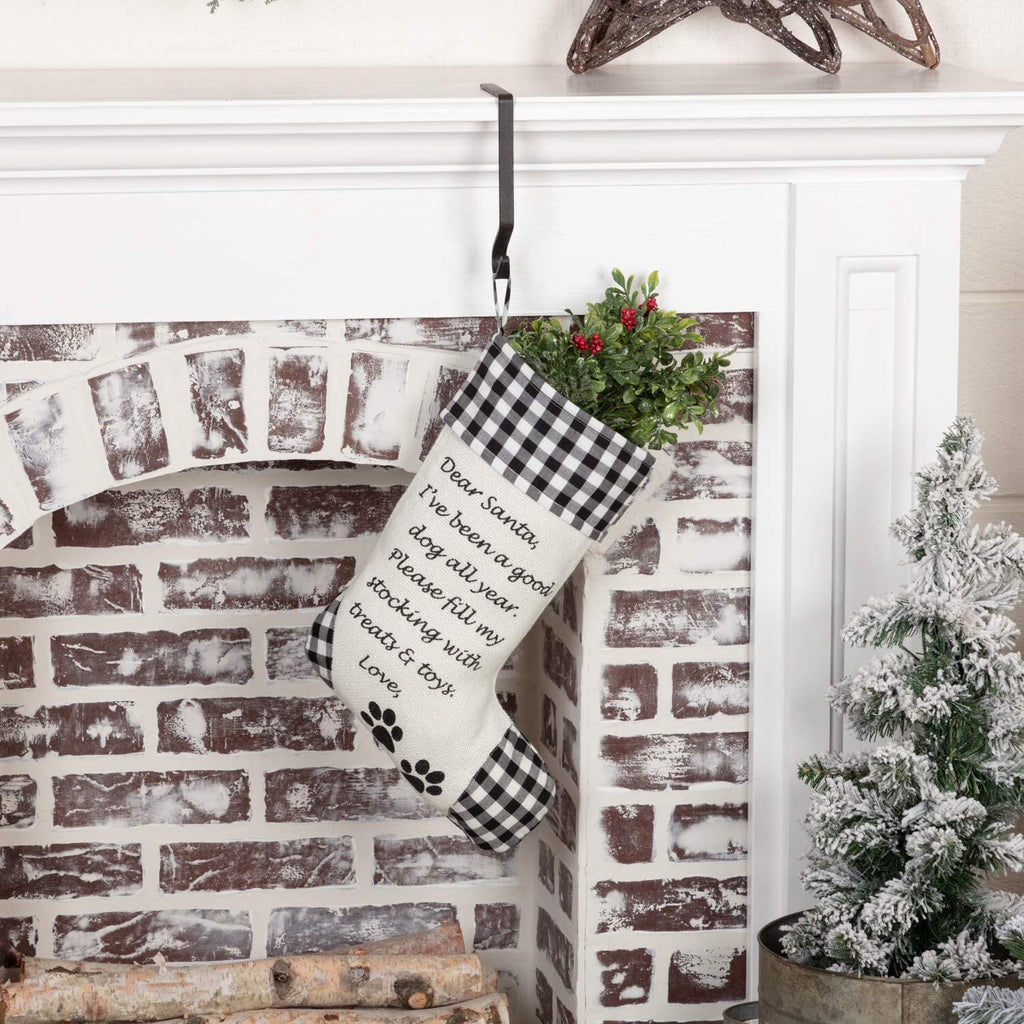 Pine Valley Quilts Dear Santa Dog Stocking Black & White Buffalo Check 11x15 68284