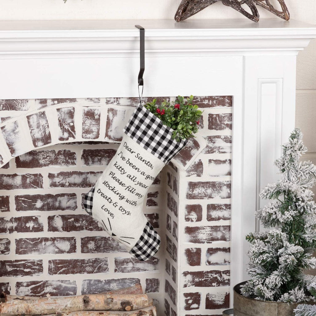 Pine Valley Quilts Dear Santa Cat Stocking Black & White Buffalo Check 11x15 68285