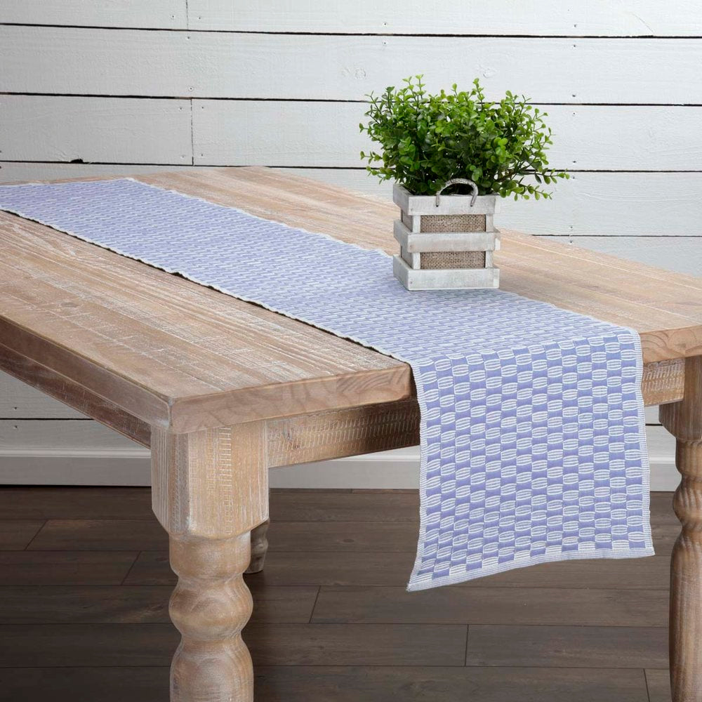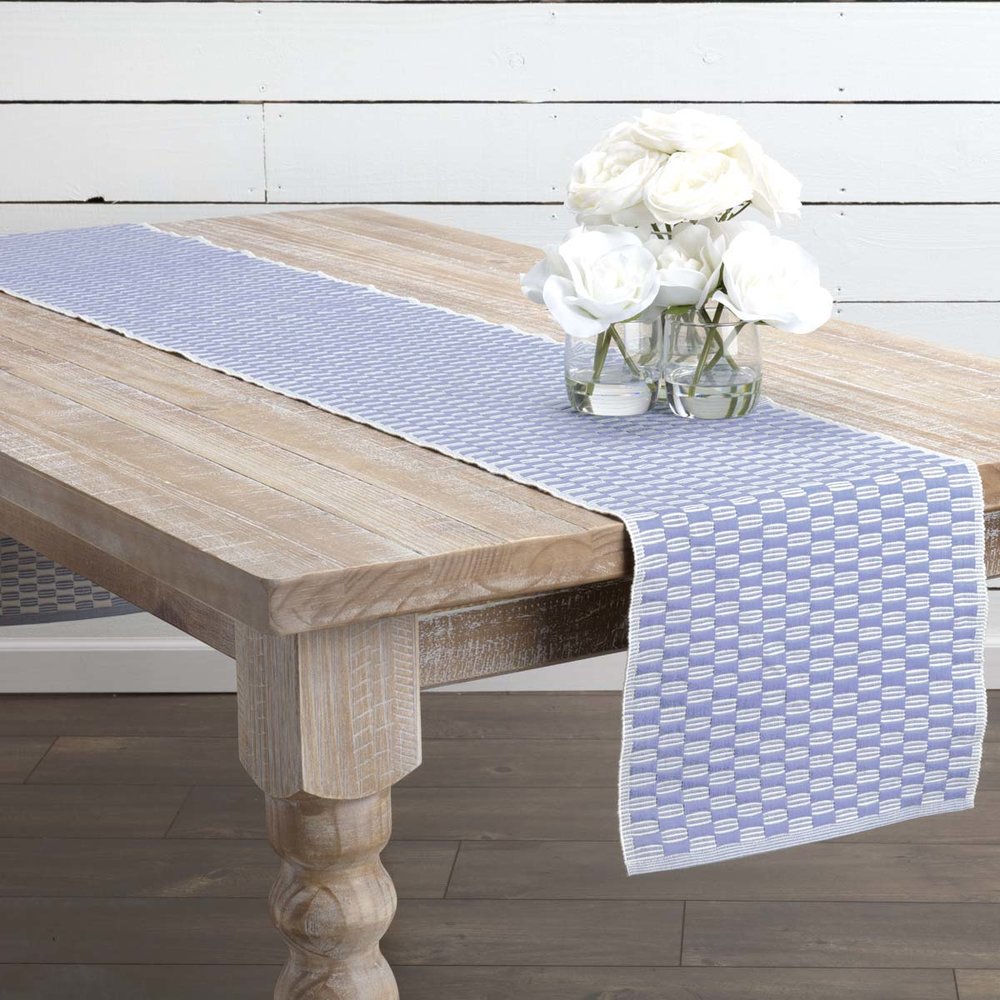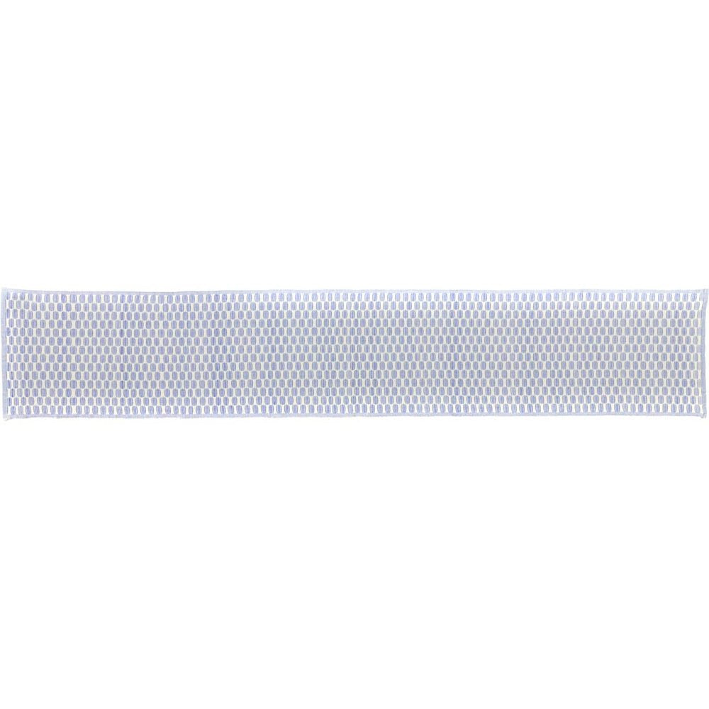 Lighten the mood with our new Chandler Ribbed Runner . The runner is blue and white, with a turned seam edge on the short ends for a finished look.