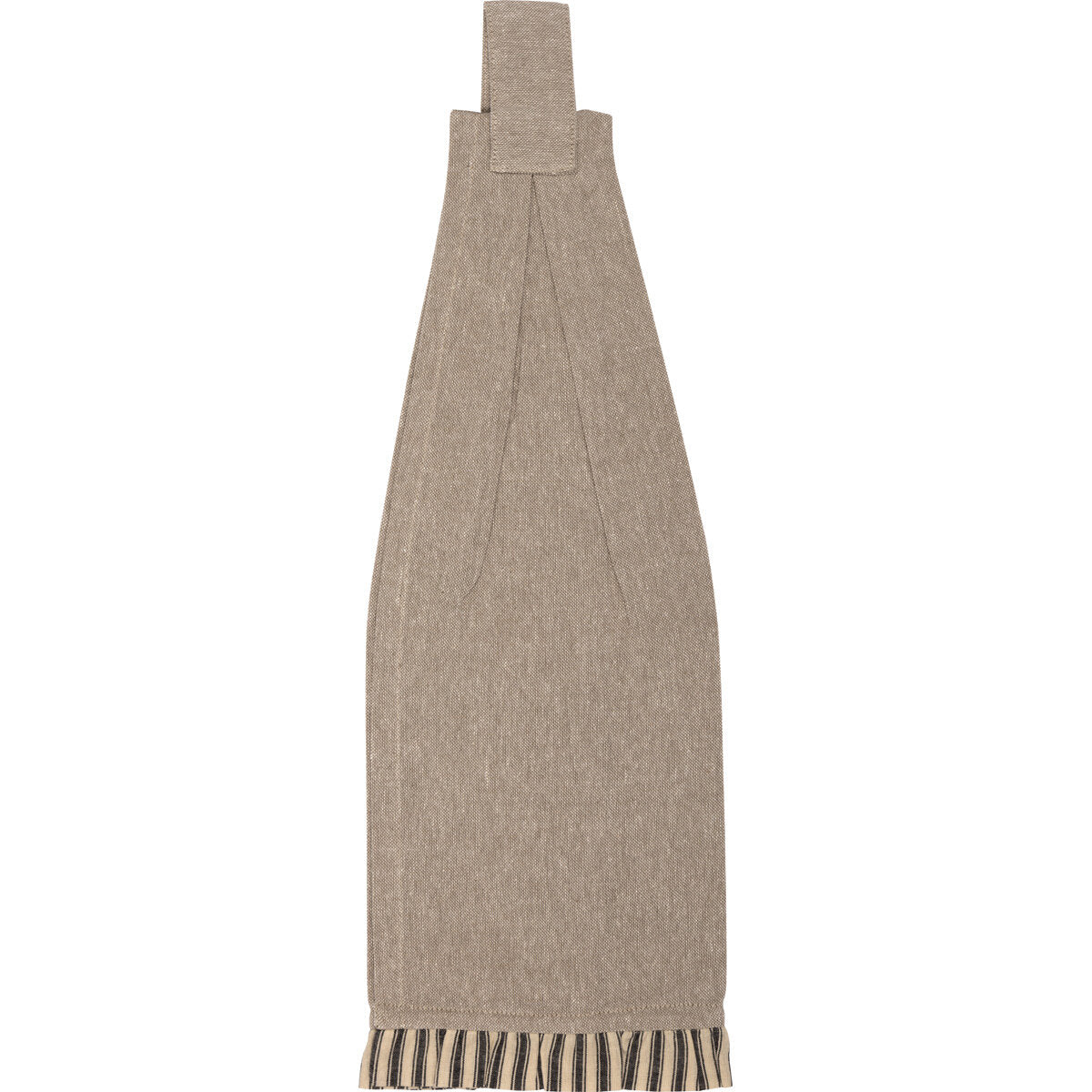 • RUFFLED: Trimmed with a 1" dark creme and black ticking stripe ruffle at the bottom of each towel
