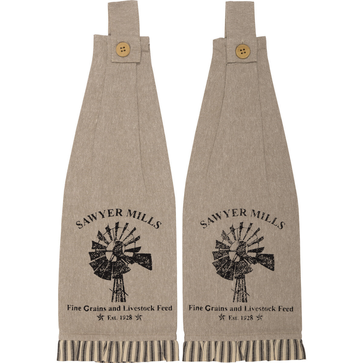 Sawyer Mill Charcoal Windmill Button Loop Kitchen Towel Set of 2