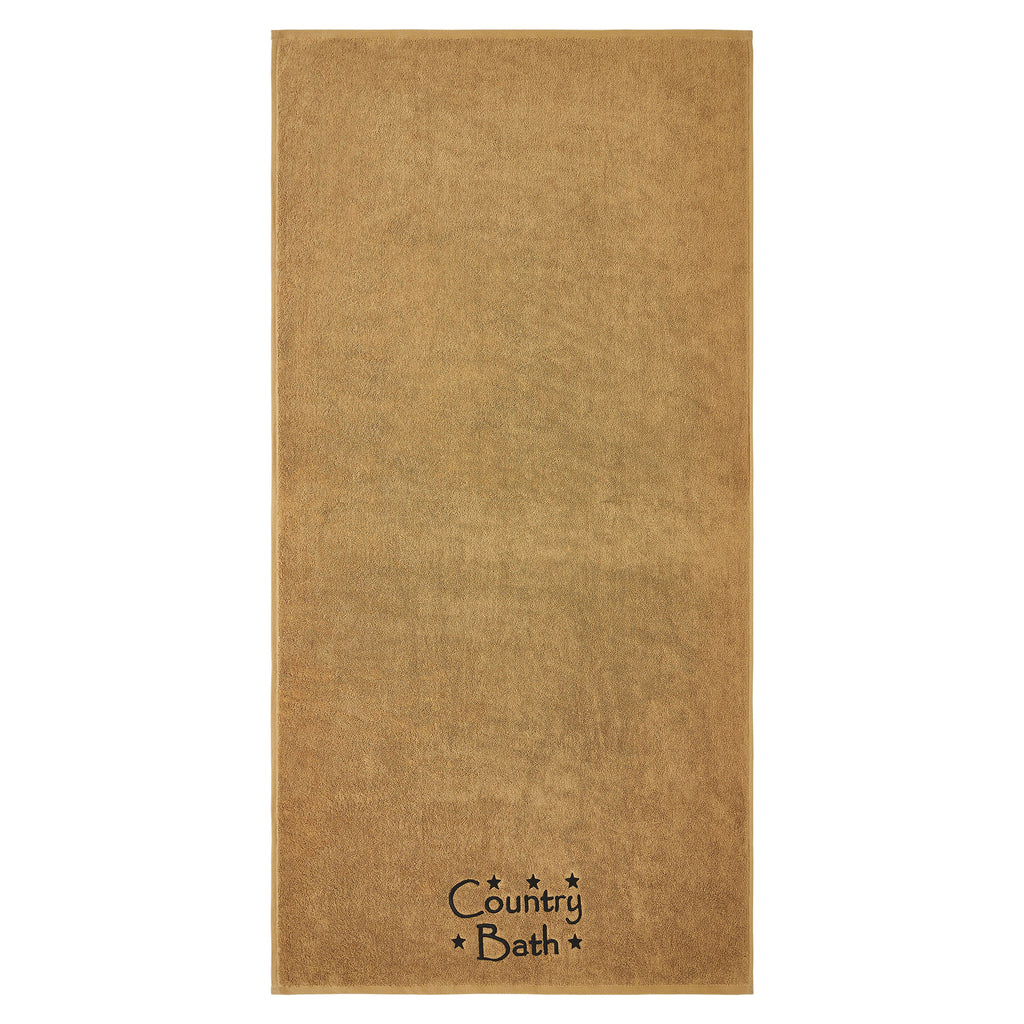 Add a charming farmhouse touch to your bathroom with the VHC Brands Black Country Bath Stars Tan Bath Towel Set of 2. Made from luxurious and soft cotton terrycloth, these bath towels provide comfort and absorbency for everyday use. The warm doe tan hue offers a neutral, inviting backdrop, while the embroidered design at the bottom features rustic stars encircling the bold phrase Country Bath in deep black, adding a distinctive country-inspired accent. Each towel measures 27x54 inches, making them perfect for use after a shower or bath. The embroidered stars and text bring a timeless farmhouse aesthetic, ideal for enhancing the look of your country-style washroom. These towels are not only decorative but also highly functional, being machine washable for easy care and long-lasting softness. The VHC Brands Black Country Bath Stars Tan Bath Towel Set combines everyday practicality with rustic elegance. Perfect for those who appreciate farmhouse charm, these towels provide a cozy, stylish accent while remaining durable and easy to maintain. Elevate your bathroom decor with these beautifully crafted and functional towels.