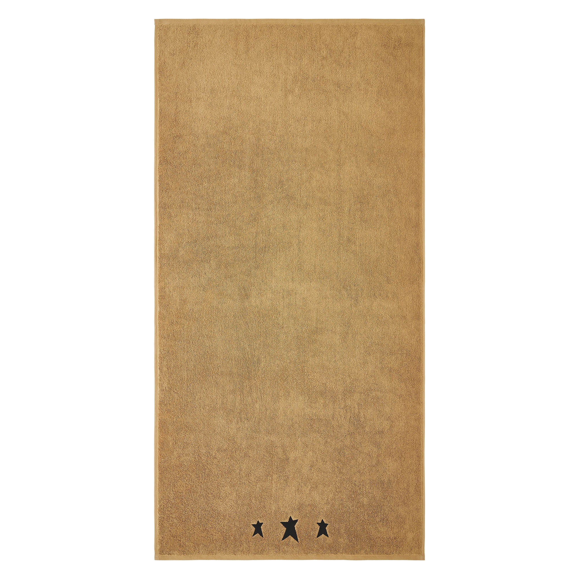 Add a touch of rustic elegance to your bathroom with the VHC Brands Black Prim Stars Tan Bath Towel Set of 2. Crafted from soft and absorbent cotton terrycloth, these towels provide both comfort and functionality for everyday use. The warm doe tan hue offers a neutral, inviting backdrop, while the embroidered design at the bottom showcases three primitive stars in rustic black, adding a classic country-inspired accent to your decor. Each bath towel measures 27x54 inches, offering a generous size perfect for drying off after a bath or shower. The embroidered stars bring a timeless, primitive charm to your bathroom, making these towels an ideal addition to any rustic or country-style washroom. Machine washable for easy care, they retain their softness and quality even with frequent use. The VHC Brands Black Prim Stars Tan Bath Towel Set combines rustic style with practicality, offering a cozy, primitive feel that complements any farmhouse decor. Whether you're looking to elevate your bathroom's aesthetic or simply add a decorative, yet functional, towel set, these towels provide both visual appeal and everyday utility.