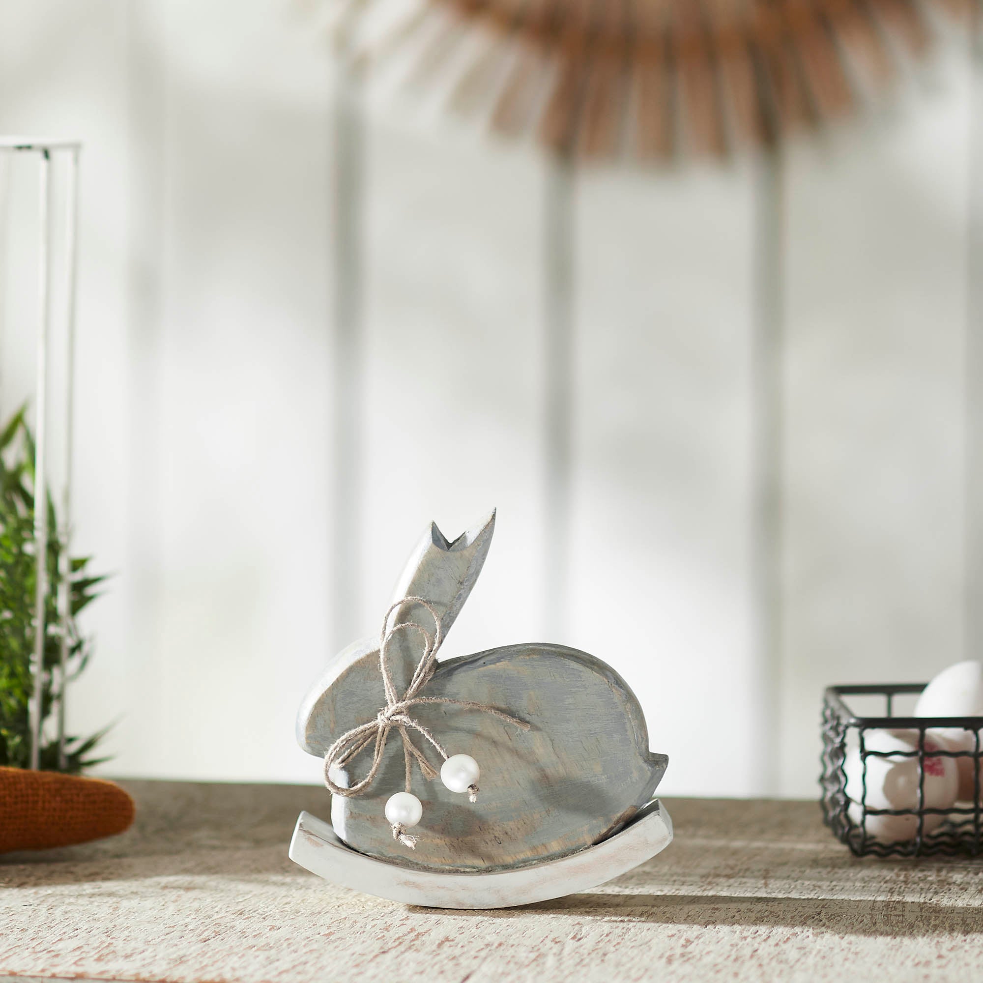 - Delicate Bunny Figurine: Features a charming dove grey bunny with a twine bow and pearl bead, perfect for adding a subtle touch of spring to your decor.