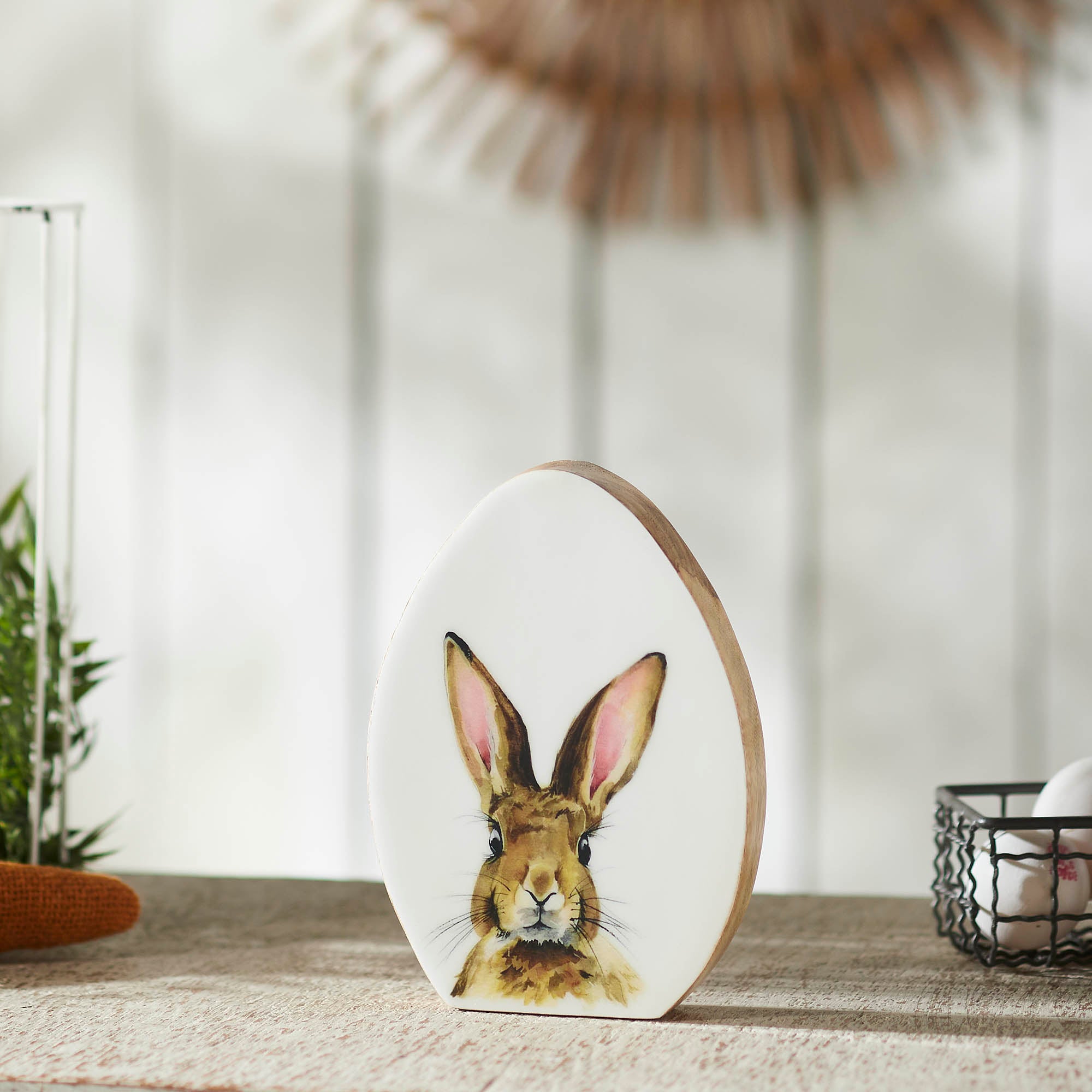 - Charming Easter Design: Features a fluffy brown bunny printed on a white oval wooden figurine, perfect for spring and Easter decor.