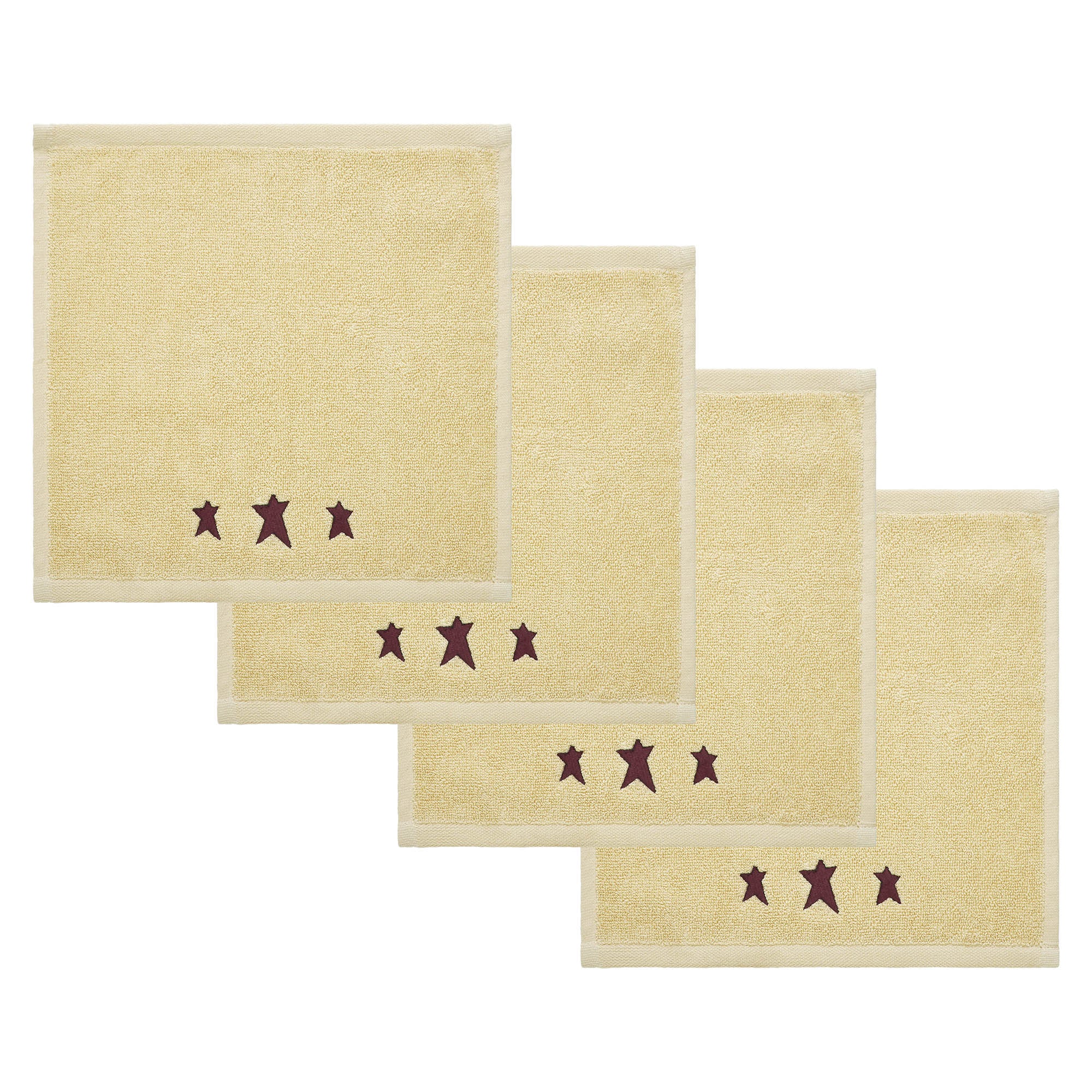 Burgundy Prim Stars Creme Washcloth Set of 4 12x12