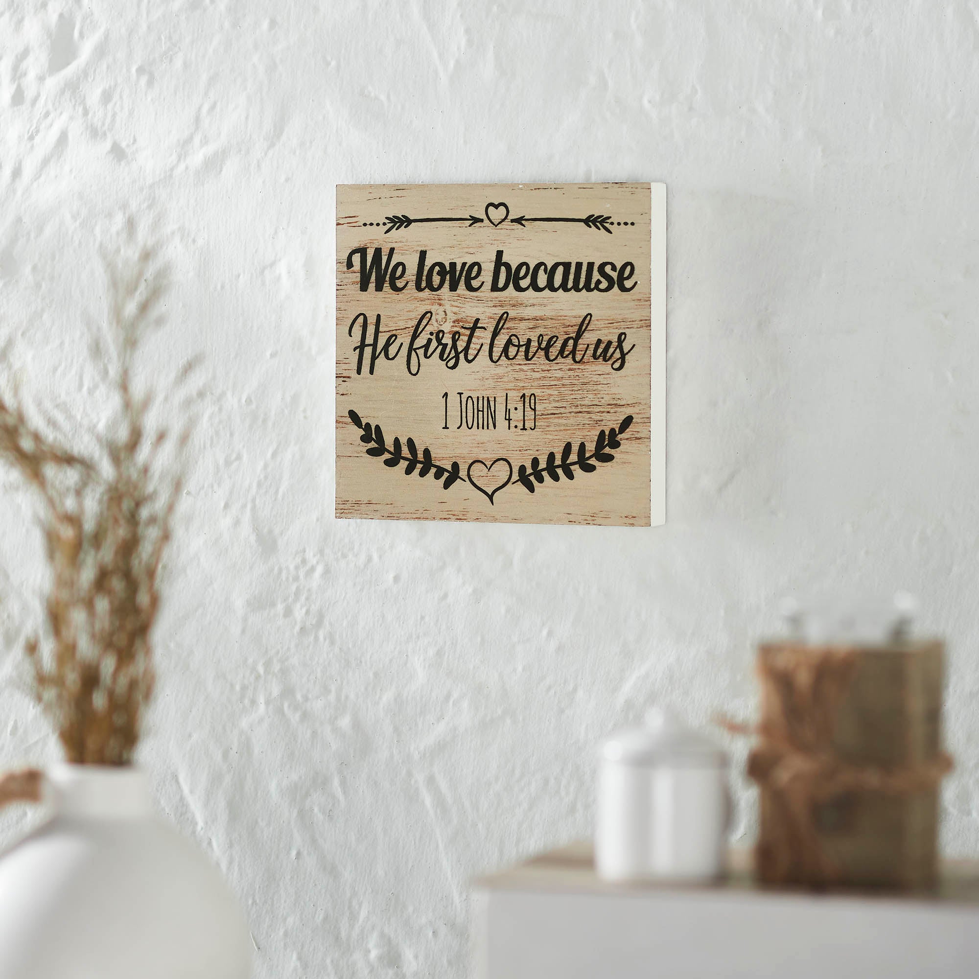 Celebrate Grace 1 John 4:19 MDF Sign 8x8x1