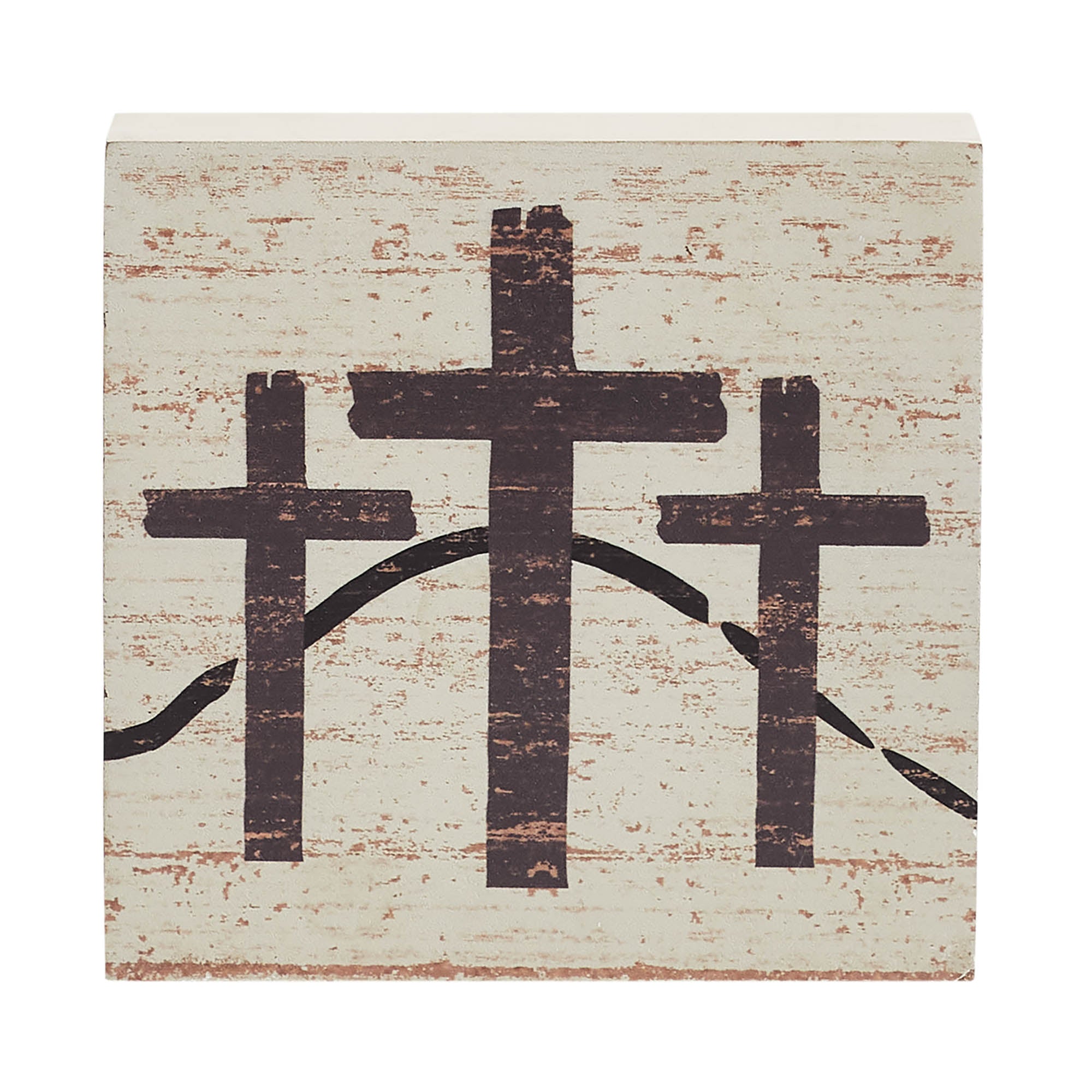Celebrate Grace 3 Crosses Distressed Antique White MDF Block Sign 6x6x1
